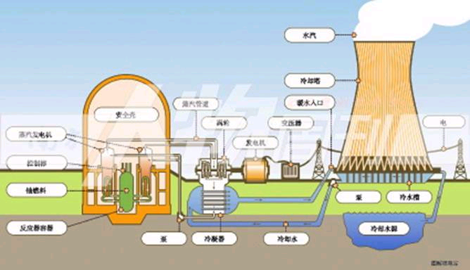 現(xiàn)代的壓水堆核電廠的反應(yīng)堆中,有很完善的措施保證放射性物質(zhì)不會外泄。核反應(yīng)發(fā)生在一個鋯合金的包殼內(nèi),鋯合金外面流動著一回路的冷卻水,因?yàn)檫@些水幾乎直接跟核反應(yīng)的核心部分接觸,有一定放射性,我們并不利用這些水直接發(fā)電。在蒸汽發(fā)生器中,直接接觸反應(yīng)核心的一回路水與二回路水發(fā)生熱交換,產(chǎn)生蒸汽,推動汽輪機(jī)發(fā)電。在發(fā)電機(jī)內(nèi)做完功的蒸汽被外界冷的海水冷卻成水。