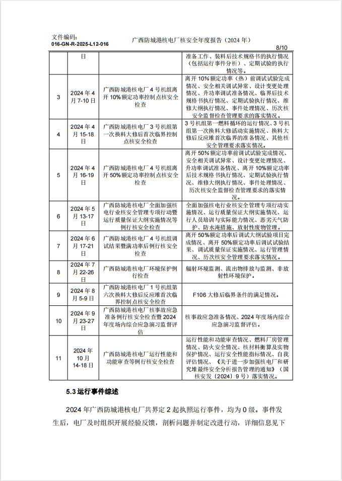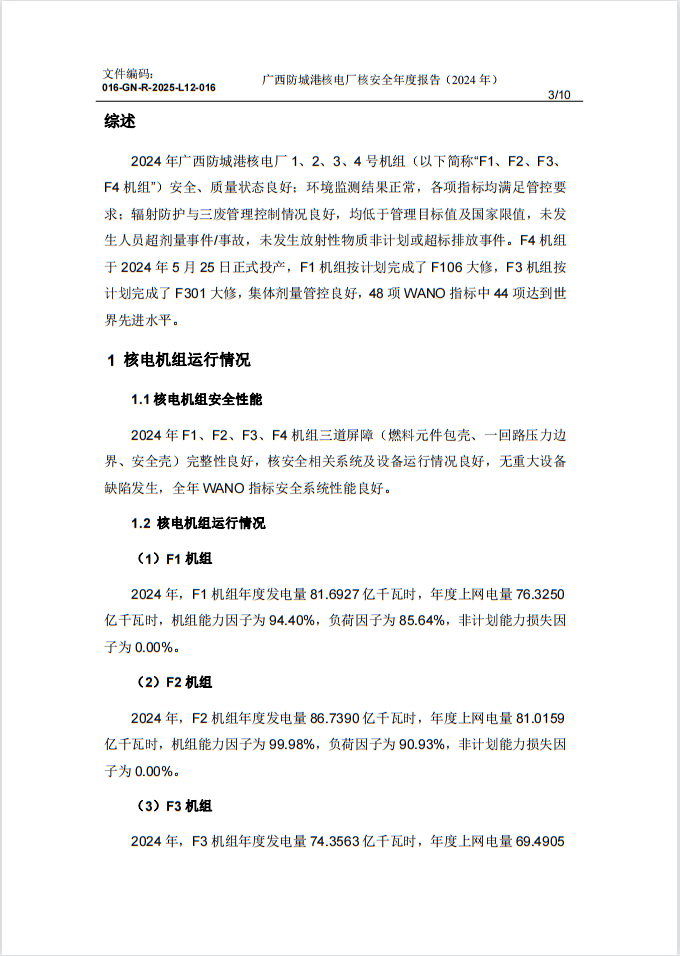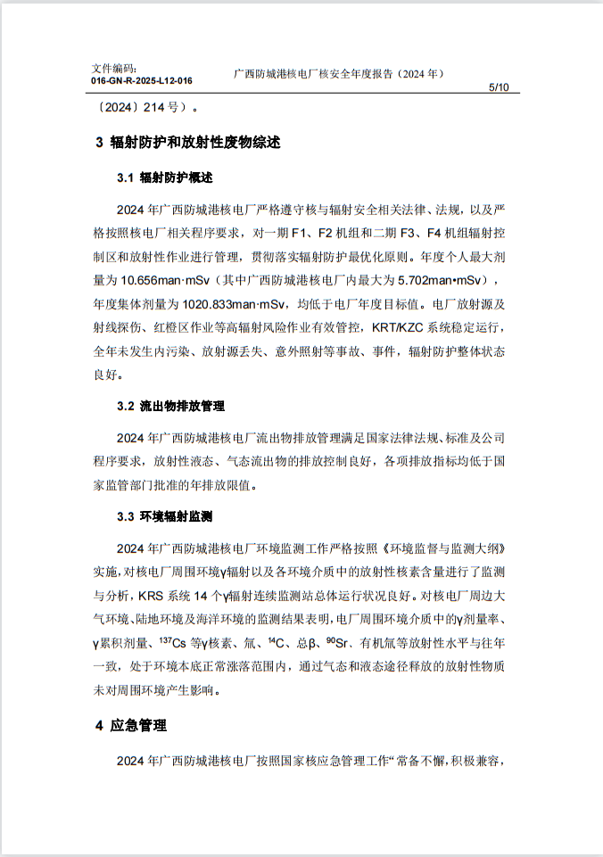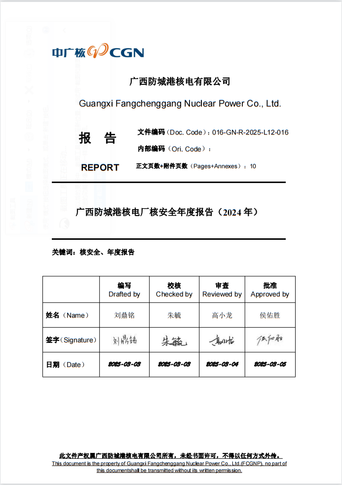 016GNR2025L12016-廣西防城港核電廠核安全年度報告(2024年)